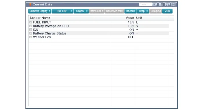 | 4. | Select the "Current Data" menu to search the current state of the input/output data. The input/output data for the sensors corresponding to the cluster module (CLU) can be checked.