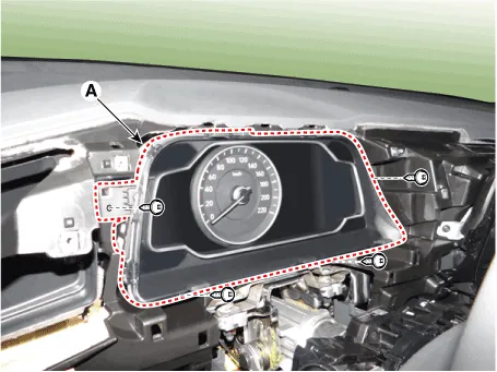 | 4. | Remove the instrument cluster after disconnect the cluster connecotr (A).