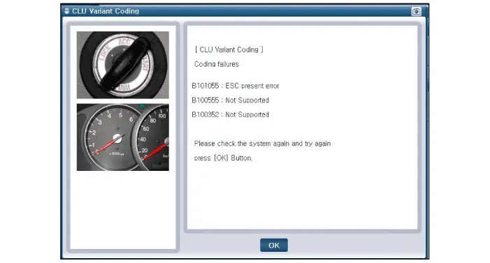| 4. | If the trouble codes occurred when performing variant coding, try the CLU variant coding again after checking the installation status of CLU system.