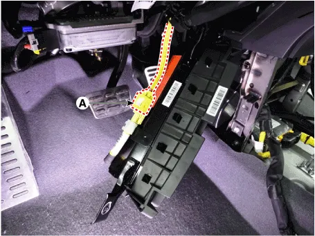 | 3. | Remove the knee airbag module (A) after loosening the mounting nuts.