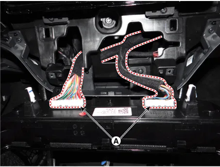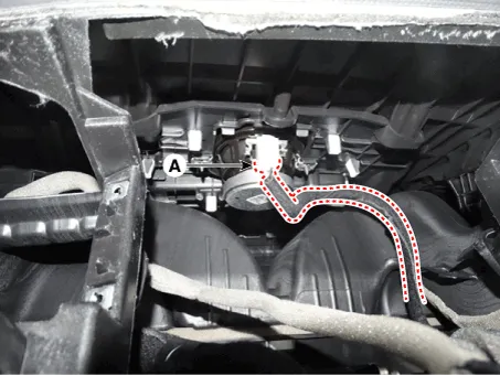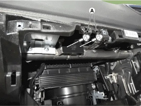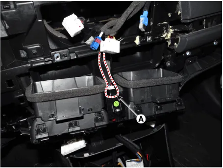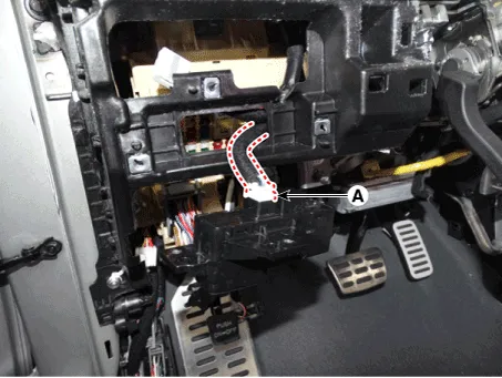 | 16. | Press the lock pin and separate the A/C & heater controller connectors (A).