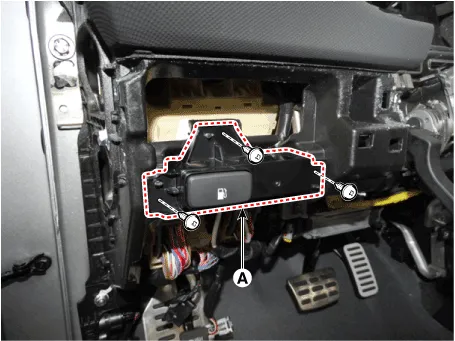 | 17. | Loosen the mounting screws and remove the fuel panel assembly (A).