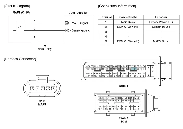Inspection1.Check the MAFS visually.– Mounting direction correct. – Any contamination, corrosion or damage on connector.