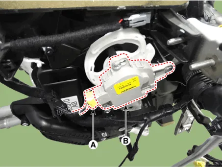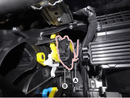 | 3. | Disconnect the connector (A) and then remove the mode control actuator (B) after loosening the mounting screws. [Driver's side]