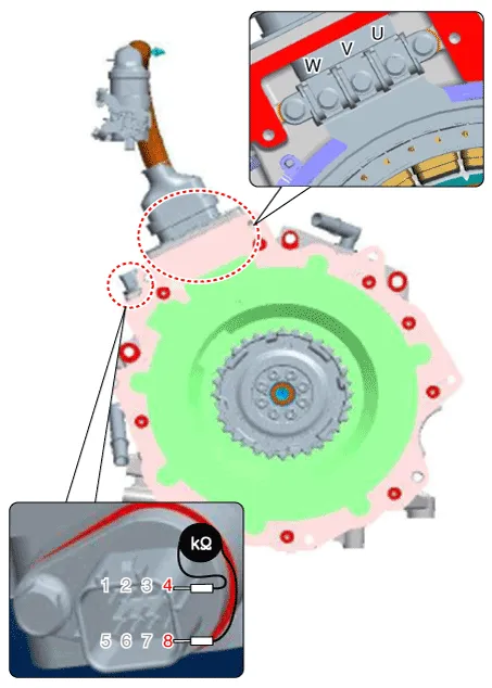 | 2. | If you need to replace the temperature sensor, replace the HSG assembly. (Refer to Hybrid Motor Assembly - "Hybrid Starter Generator".) |