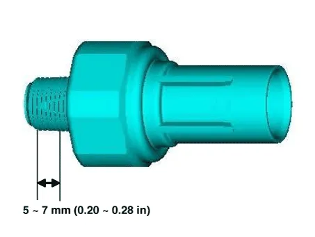 | 3. | If there is no continuity when a 50 kPa (0.50 kgf/cm², 7.25 psi) is applied through the oil hole, the switch is operaing properly. Check for air leakage. If air leaks, the diaphragm is broken. Replace it.