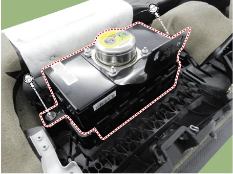 | 3. | Place the passenger airbag on the crash pad and tighten the passenger airbag mounting bolts.