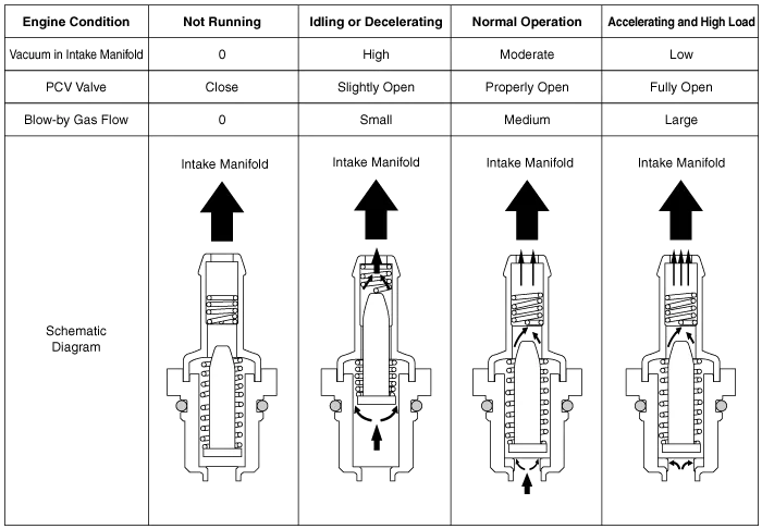 Inspection1. After disconnecting the vapor hose from the PCV valve, remove the PCV valve. 2. Reconnect the PCV valve to the vapor hose.3. Run the engine at idle, then put a finger over the open end of the PCV valve and make sure that intake manifold vacuum can be felt.