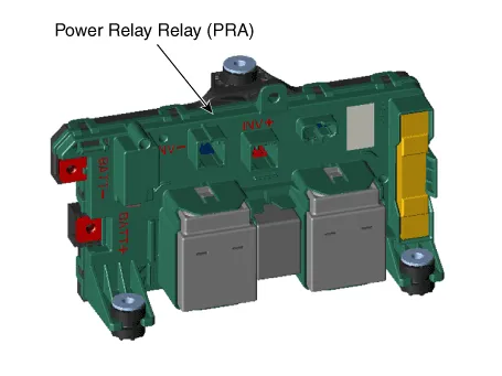 DescriptionThe Power Relay Assembly (PRA) consists of the positive and negative main relays, pre-charge relay, pre-charge resistor and battery current sensor.