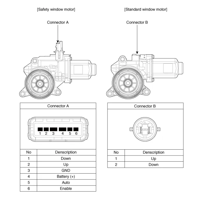 Function of Safety Power WindowWhen driver door power window auto-up switch is operated, safety function is activated.1.Safety function conditionWhen detect the force of 100N (using the 10N/mm spring) during the window rising, window is reversed.