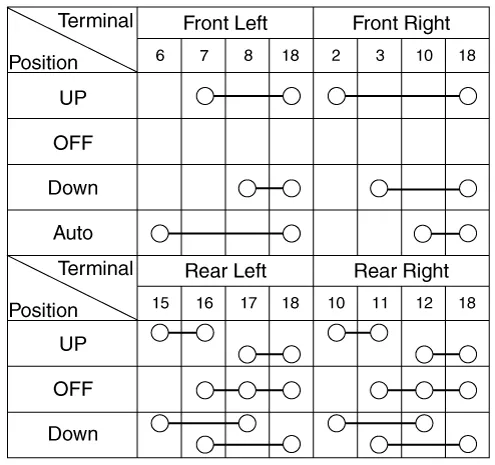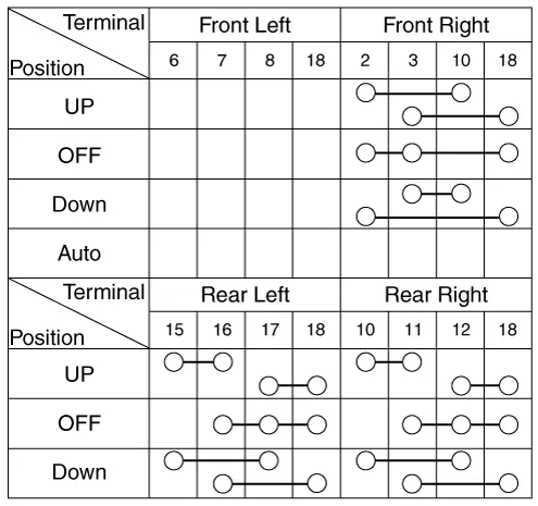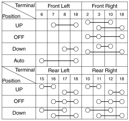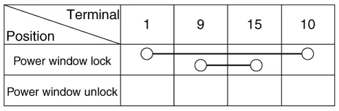 | 4. | Check for continuity between the terminals in each switch position as shown below. [Driver Auto Down Power Window Switch]