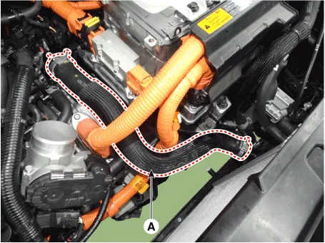 | 6. | Remove the A/C pipe fixing bolts (A).
