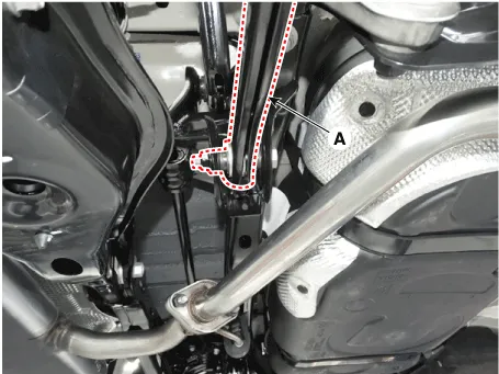 | 4. | Loosen the bolt & nut and then remove the rear assist arm (A) with the rear cross member.