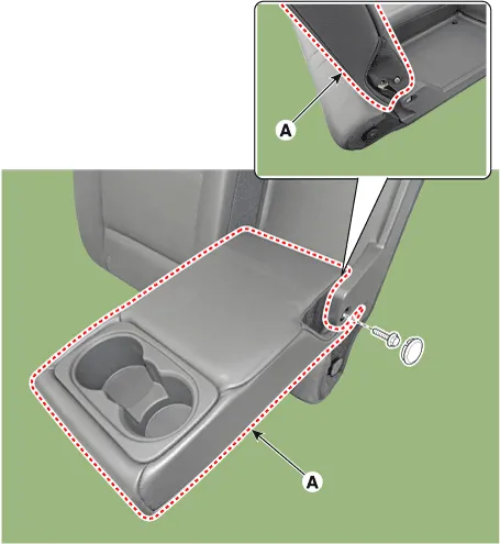 | 2. | Separate the rear back armrest (A) after removing the cap and then loosening the bolt.