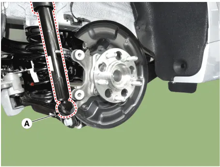| 3. | Loosen the bolt & nut and then remove the rear shock absorber (A) from the torsion beam axle.