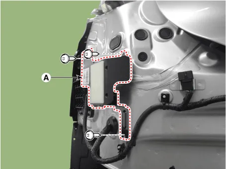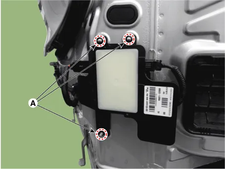 | 3. | Remove the rear corner radar unit (A) after loosening the mounting nuts.