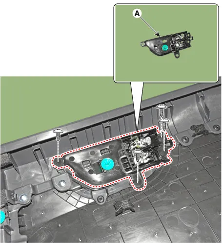 | 2. | After loosening the mounting screws, remove the rear door inside handle (A).