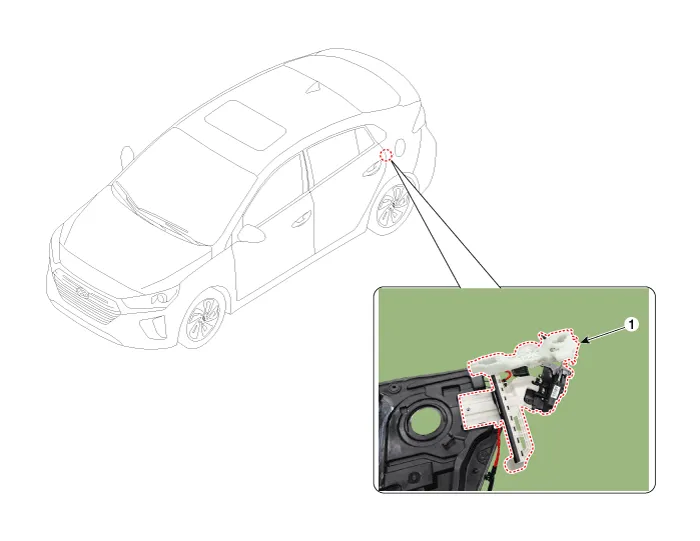 Replacement1.Remove the rear door module.(Refer to Rear Door - "Rear Door Module")2.Remove the rear door inside handle cage (A).3.Loosen the mounting bolt and remove the rear door latch (A).