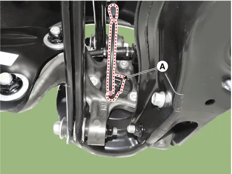 | 4. | Disconnect the rear wheel speed sensor connector (A).