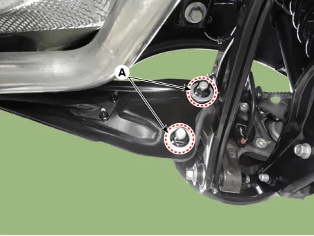 | 9. | Remove the rear shock absorber (A) from the frame by loosening the bolt.