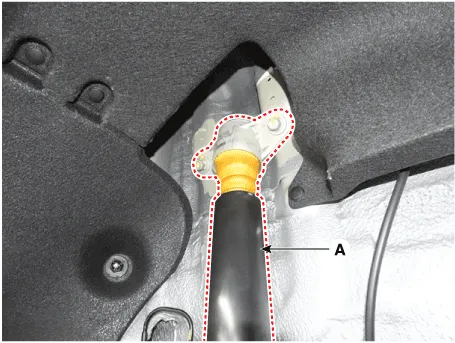 | 3. | Loosen the rear upper arm mounting bolt and then remove the rear upper arm (A).