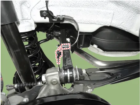 | 7. | Loosen the wheel speed sensor cable bracket nut and then separate the cables from the trailing arm.