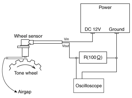 | 1. | Measure the output voltage between the terminal of the wheel speed sensor and the body ground.