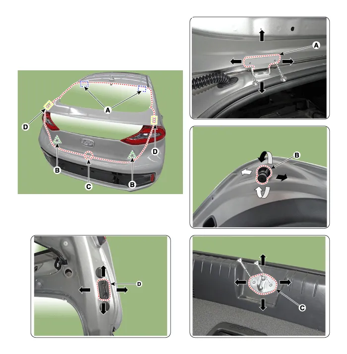 | 1. | Place the car on a flat surface and check whether the body and trunk lid are well-aligned. |