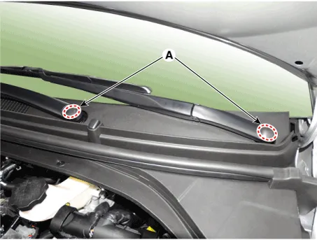 | 2. | Loosen the mounting nuts and remove the wiper arm (A).