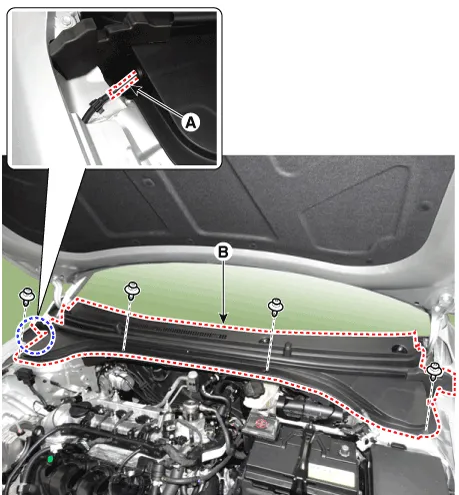 | 5. | Detach the clips, then remove the cowl top cover (B).