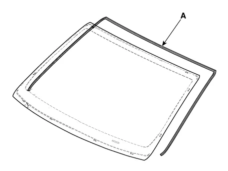 | 7. | Install the windshield glass upper molding (A).