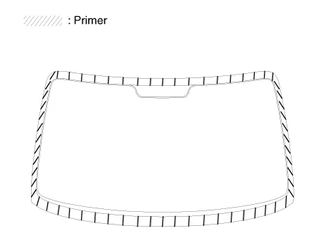 | 4. | Apply the glass primer to the outer edge of windshield glass.
