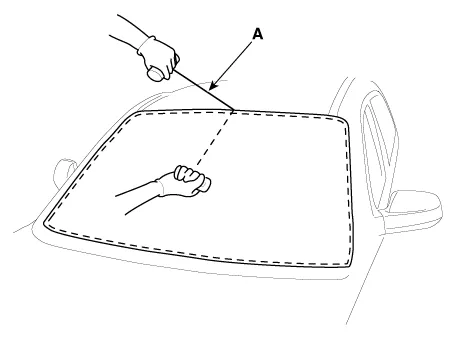 | 6. | Using a cutter (A) knife, carefully remove the windshield glass molding.