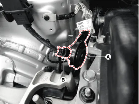 | 1. | Remove the burglar horn (A) after loosening the mounting bolts and disconnecting the connector (B).
