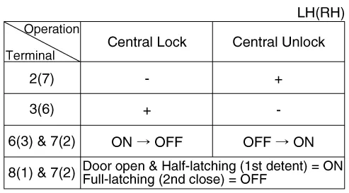 | 2. | Check for continuity between the terminals and ground according to the table (Refer to Body - "Hood Latch")