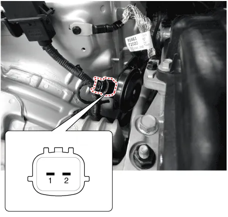 DescriptionThe ambient temperature sensor is located at the front of the condenser and detects ambient air temperature. It is a negative type thermistor; resistance will increase with lower temperature, and decrease with higher temperature.The sensor output will be used for discharge temperature control, temperature regulation door contrl, blower m