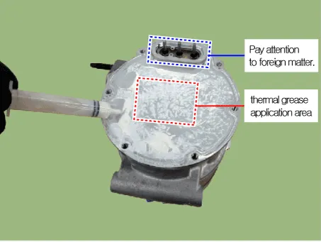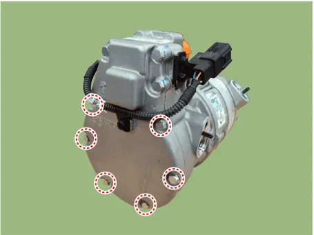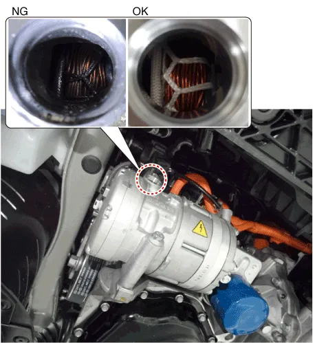 | 1. | Electric compressor body inside check procedure. | 1) | Remove the low-pressure pipe from the electric compressor. |