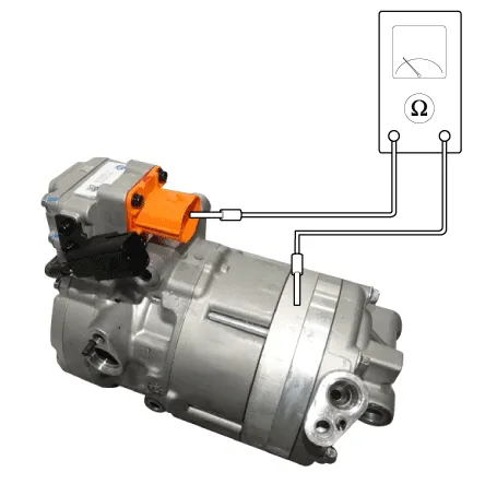 | 2. | Compressor insulation resistance measurement. Normal resistance value : check insulation resistance (Minimum : 100 MΩ) (@500 Vdc, no coolant) |