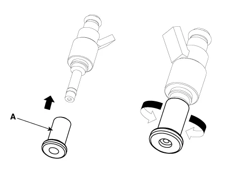 | 4. | To size the sealing ring the injector is first introduced into the sizing tool (A) (SST No.: 09353-2B000) and then pressed and at the same time rotated 180° into the sizing tool.