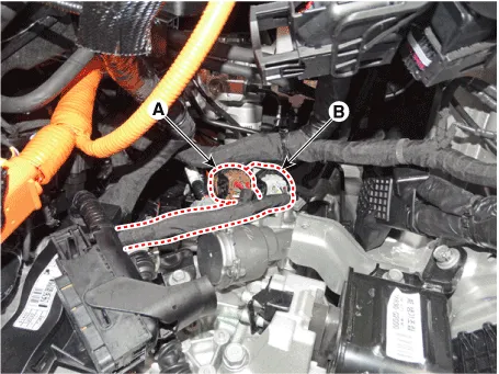 | 7. | Disconnect the gear actuator motor connector (A) and solenoid connector (B).