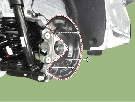 | 3. | Remove the rear brake caliper. (Refer to Brake System - "Rear Disc Brake") |