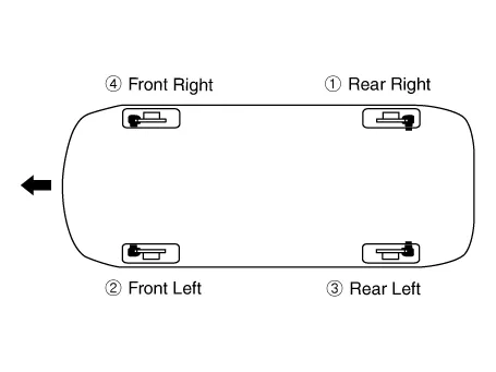 | 4. | Repeat the procedure for wheel in the sequence shown below until air bubbles no longer appear in the fluid.