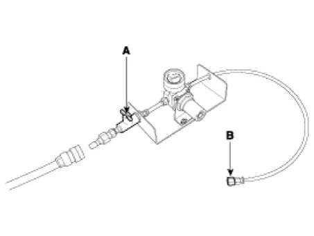 | 1. | Before installing the SST on the vehicle, close the airshut-off valve (A) to adjust the pressure gauge to thestandard value.