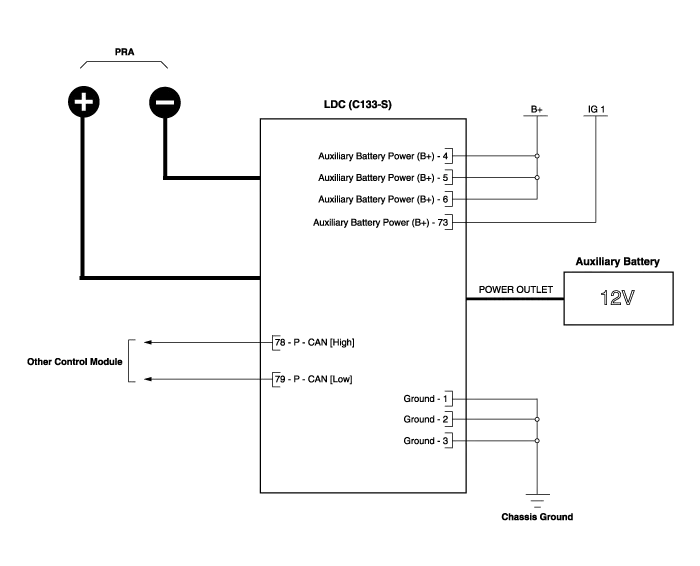Component Location1. Low Voltage DC/DC Converter (LDC)2. Power Outlet Terminal (DC 12V)3. Ground Terminal