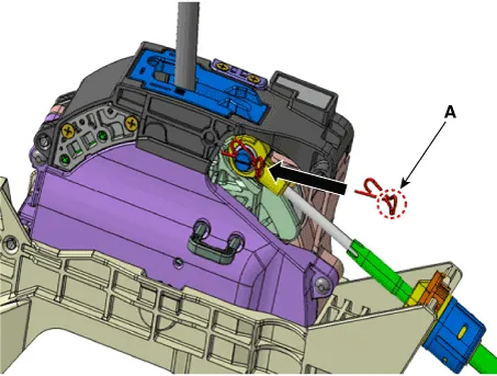 | 2. | Install the shift cable (B) and then fix the snap pin (A).