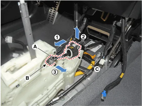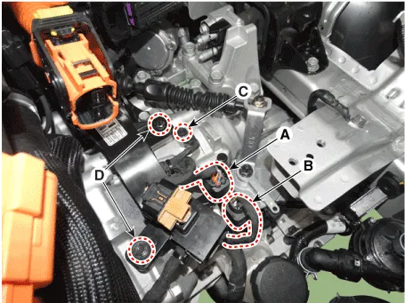 | 9. | Disconnect the DCT clutch actuator connector (C).
