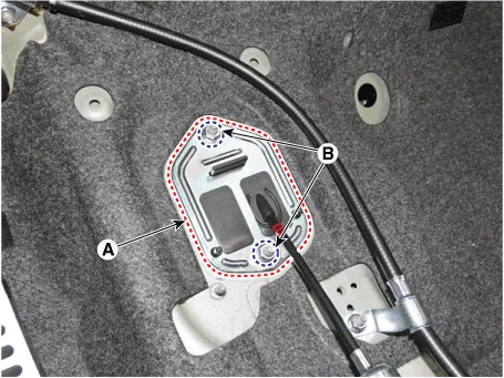 | 16. | Remove the retainer (A) by loosening the nuts (B-2ea).