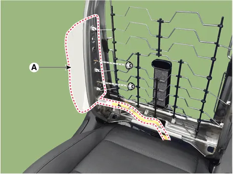 | 4. | Remove the side airbag (A) after loosening the side airbag mounting nuts.