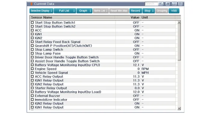 | 5. | You can see the situation of each switch on scanner after connecting the "current data" process.