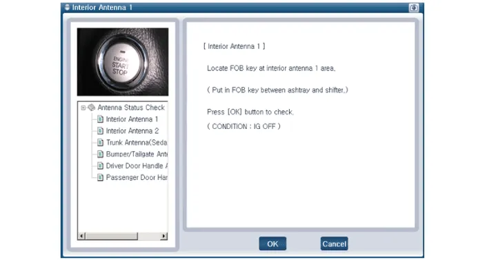 | 4. | Set the smart key near the related antenna and operate it with a GDS.